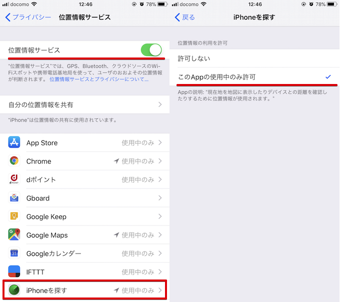 另外,请转到“查找我的 iPhone”并检查您是否有权使用位置信息。