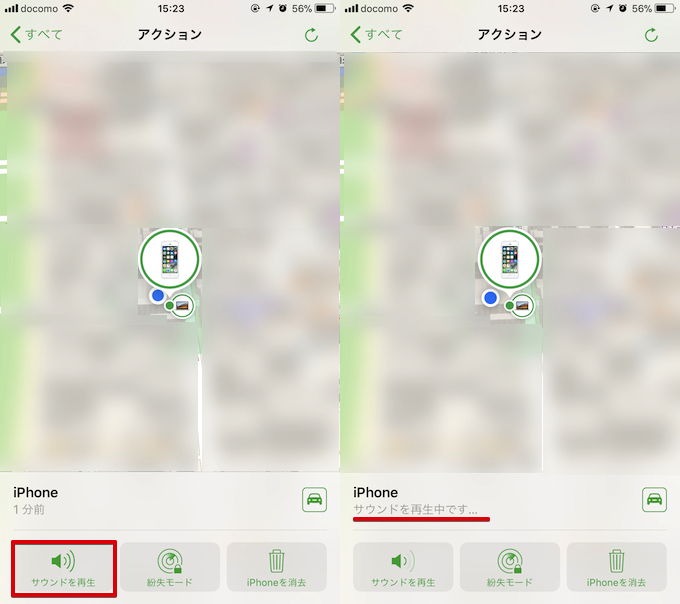 设置丢失的 iPhone 后,您可以运行“播放声音”项目来指示所选 iPhone 播放高音调的声音。