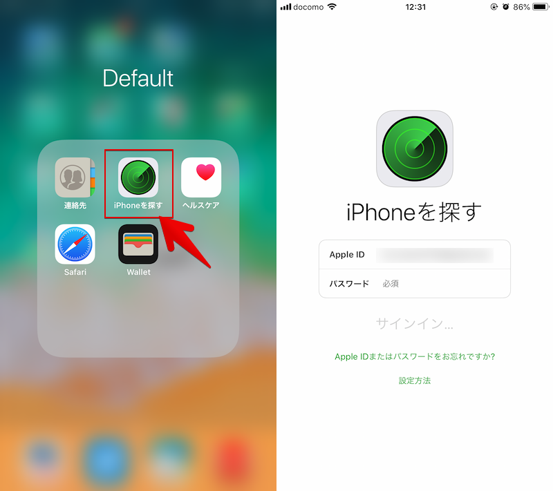 使用任一方法显示“查找我的 iPhone”操作屏幕时,请使用与丢失的 iPhone 相同的 iCloud 帐户 (=Apple ID) 登录。
