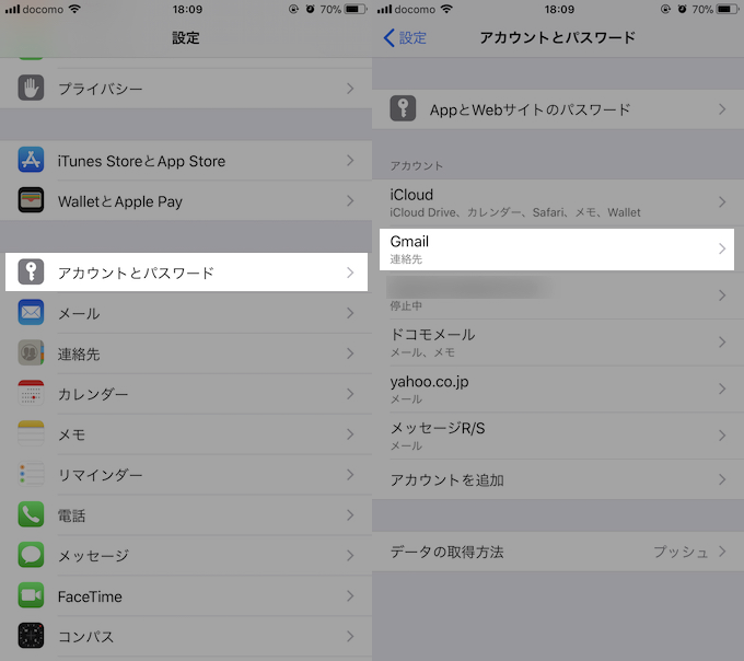 转到“设置”→“帐户和密码”,然后选择“Gmail”。