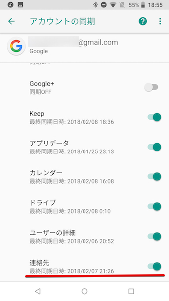 将显示要同步的数据列表,因此单击联系地址”已开启。