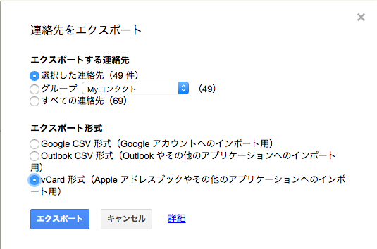 “导出联系人”勾选默认的“选定联系人”,“导出格式”勾选“vCard 格式”,根据iOS规范,最后点击“导出”即可提取联系人。