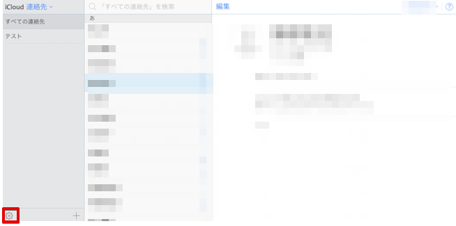 将显示 iCloud 上的联系人。现在单击左下角的设置图标。
