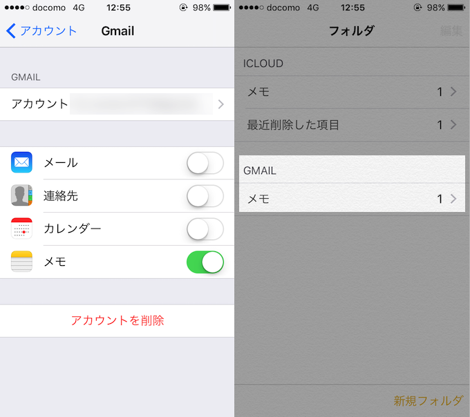 在iOS上,将显示消息“ gmail”,因此在确认“备忘”切换后,如果打开“备忘录”应用程序,则应看到一个称为“ gmail”的新项目。