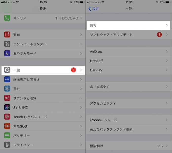 例如,在 iPhone 8 Plus (iOS 11.0.3) 上,打开“设置”→“常规”,然后打开“信息”。