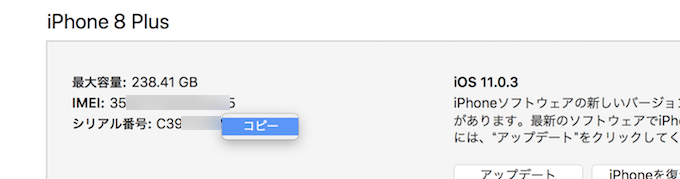 根据您的环境,可能会显示“IMEI(制造编号)”和“序列号”以外的信息,但您可以通过单击各个项目将显示切换到下一个信息,因此只需单击直到看到“IMEI(制造编号)”和“序列号”即可。