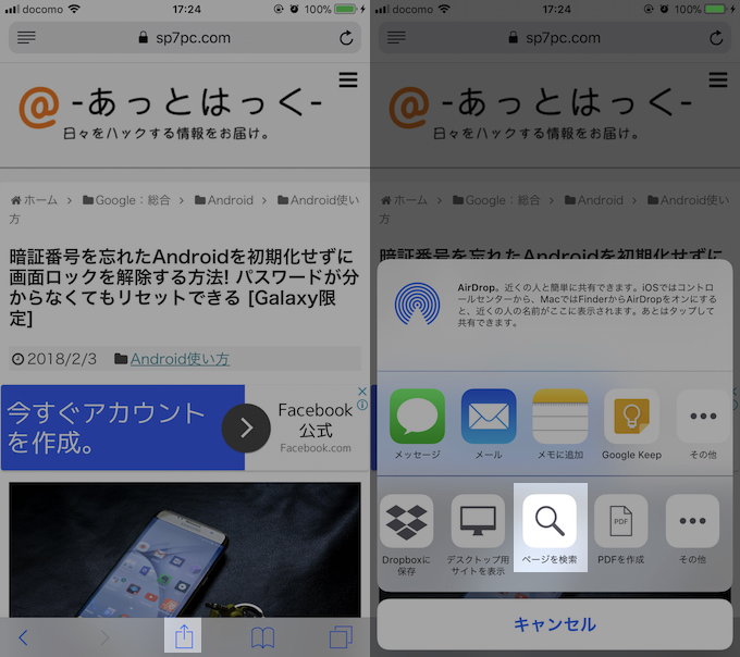 一种常见的方法是从屏幕底部的共享菜单中点击“搜索页面”,