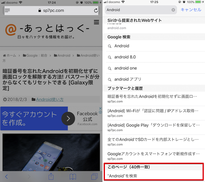事实上,作为一种替代方法,您还可以通过在页面顶部显示的地址栏中输入要搜索的关键字并从搜索候选列表中选择“本页”来突出显示页面上的匹配单词。