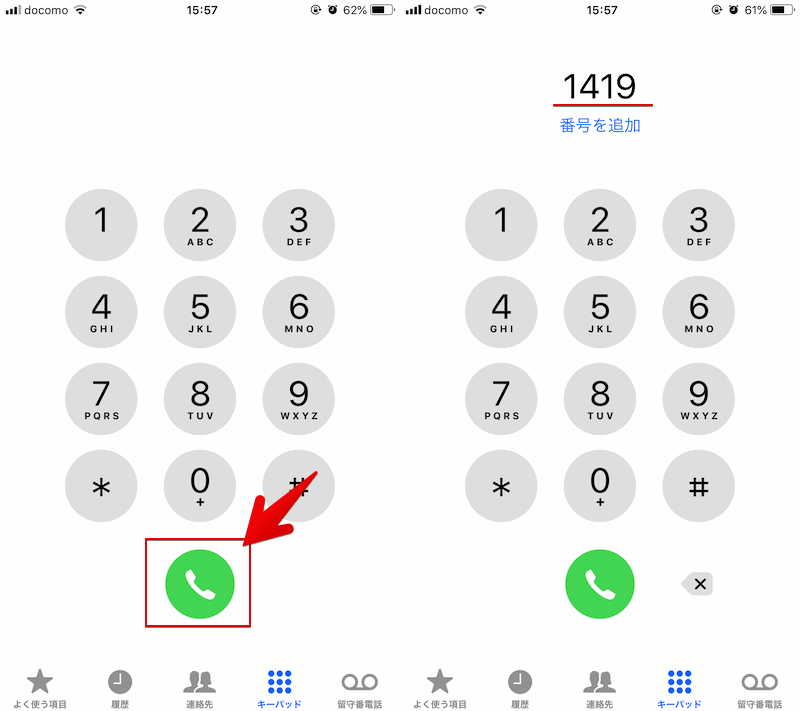 在“电话”应用程序的键盘上输入呼叫者号码时,按绿色呼叫按钮即可自动输入您刚刚拨打的号码。