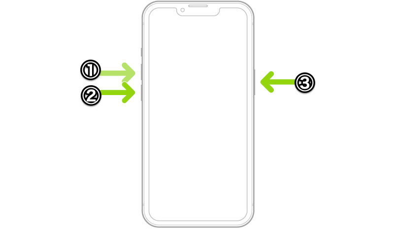 ①按照距离顶部按钮最近的一个和距离顶部按钮最远的顺序按下音量按钮→②按住顶部按钮