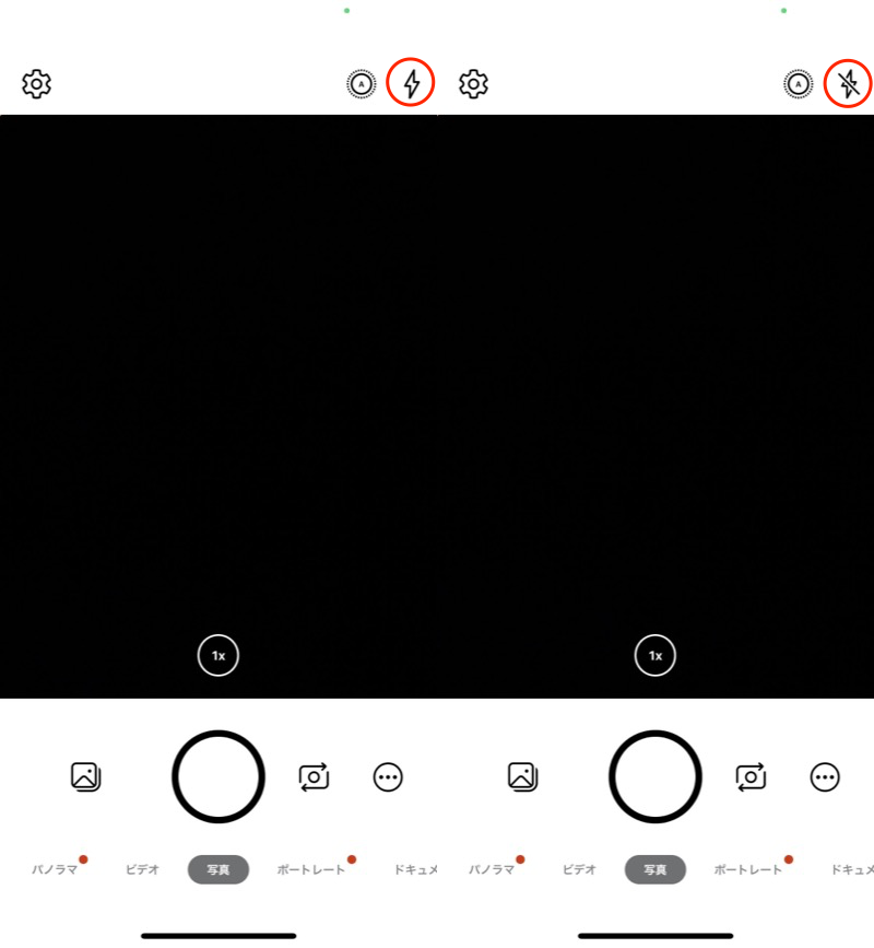 (左)闪光灯打开(= 快门声) (右)闪光灯关闭(= 无快门声)