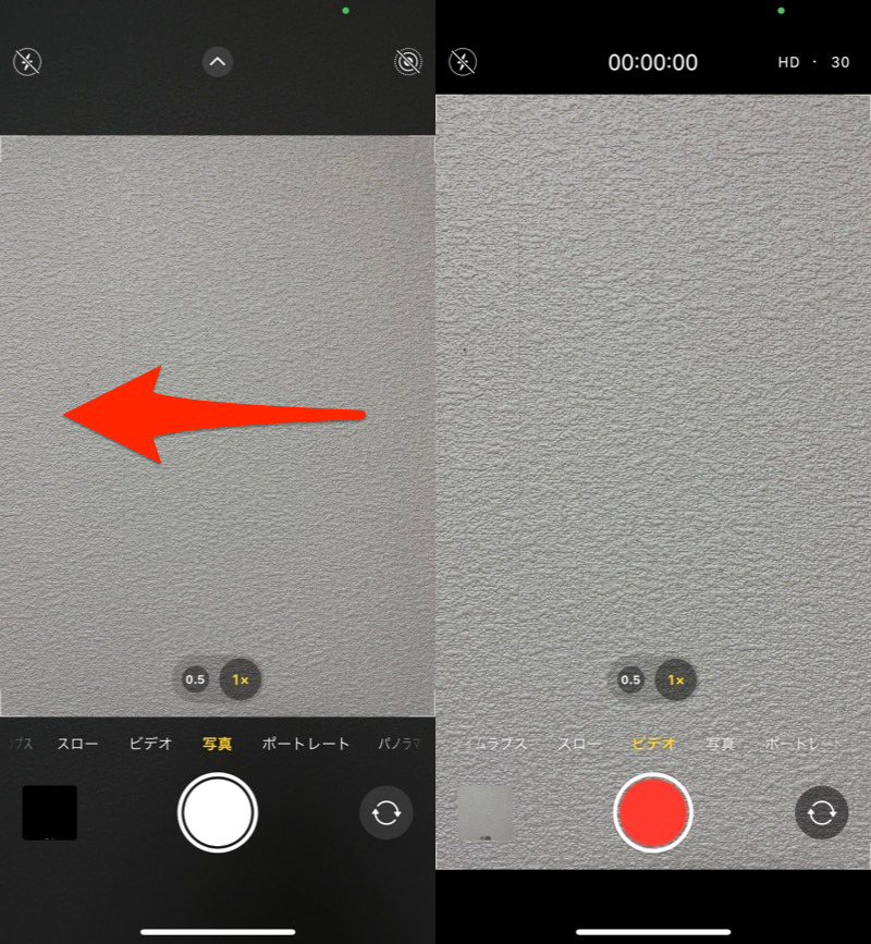 向左或向右(左)滑动即可进入视频模式(右)。