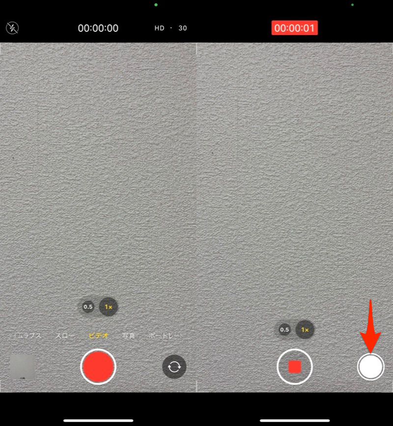(右)录制视频时,您可以通过点击箭头图标来拍摄静态图像。