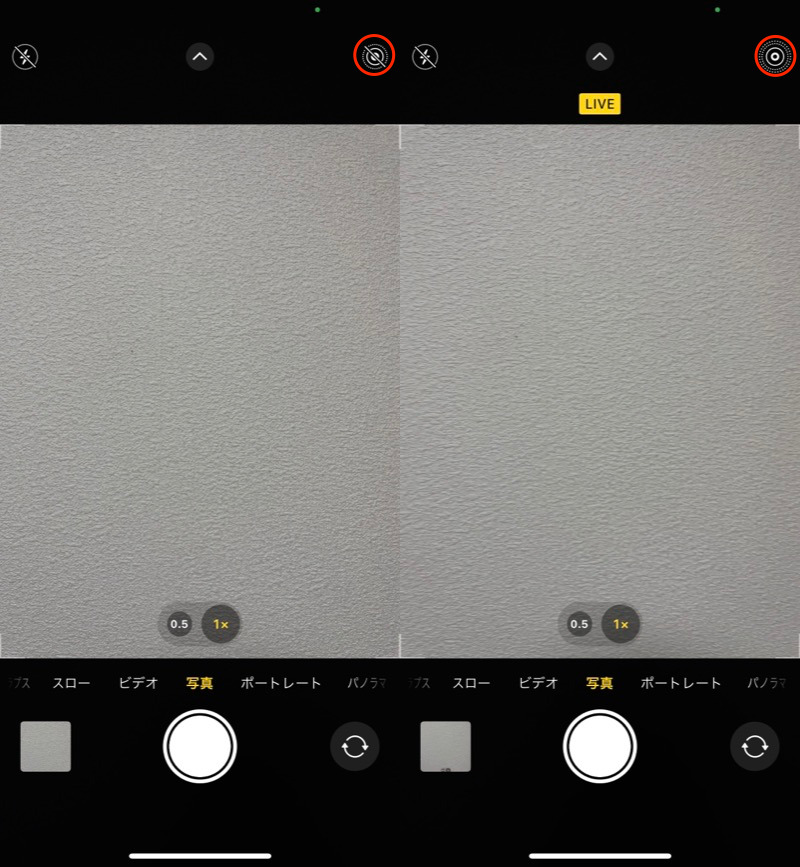(左)实时照片关闭 (右)实时照片开启
