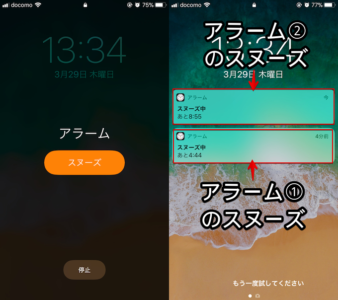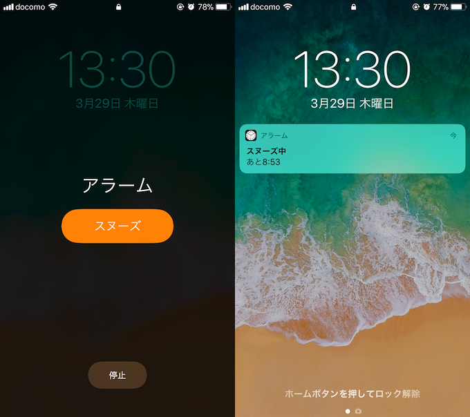 例如,当锁定屏幕上出现贪睡声音时,如果您点击“停止”按钮而不是“贪睡”,贪睡将在此时结束。