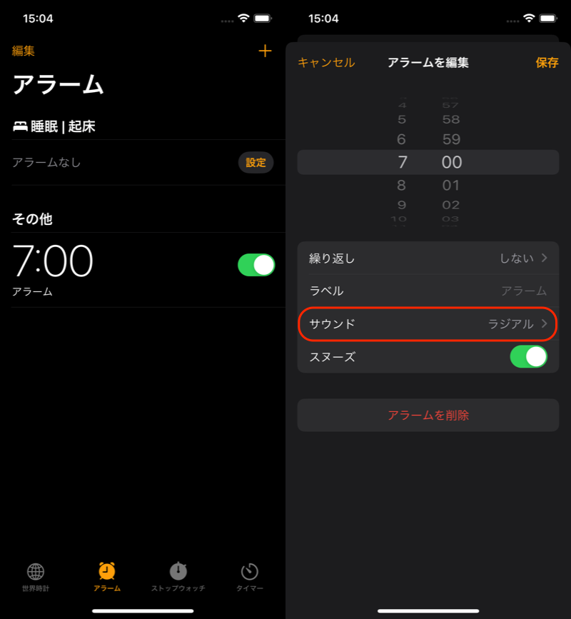 从时钟应用程序中选择闹钟,声音检查设置状态。