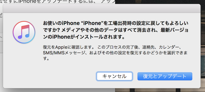 当您点击“恢复”时,会出现一条警告,询问“您要将 iPhone 恢复到出厂设置吗?”选择“恢复并更新”。