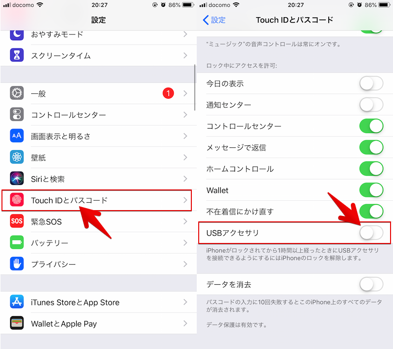 如果您从“设置”中的密码设置中关闭“USB 配件”,则会启用该功能。