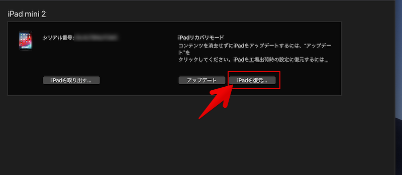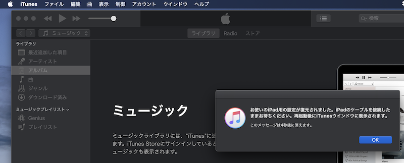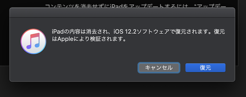 内容は消去され、iOS x.x ソフトウェアで復元されます。 復元はAppleにより検証されます。