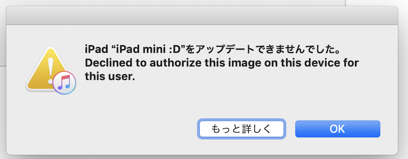 iPhone/iPadをアップデートできませんでした。 Declined to authorize this image on this device for this user.