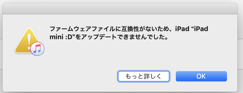 ファームウェアファイルに互換性がないため、iPhone/iPadをアップデートできませんでした。