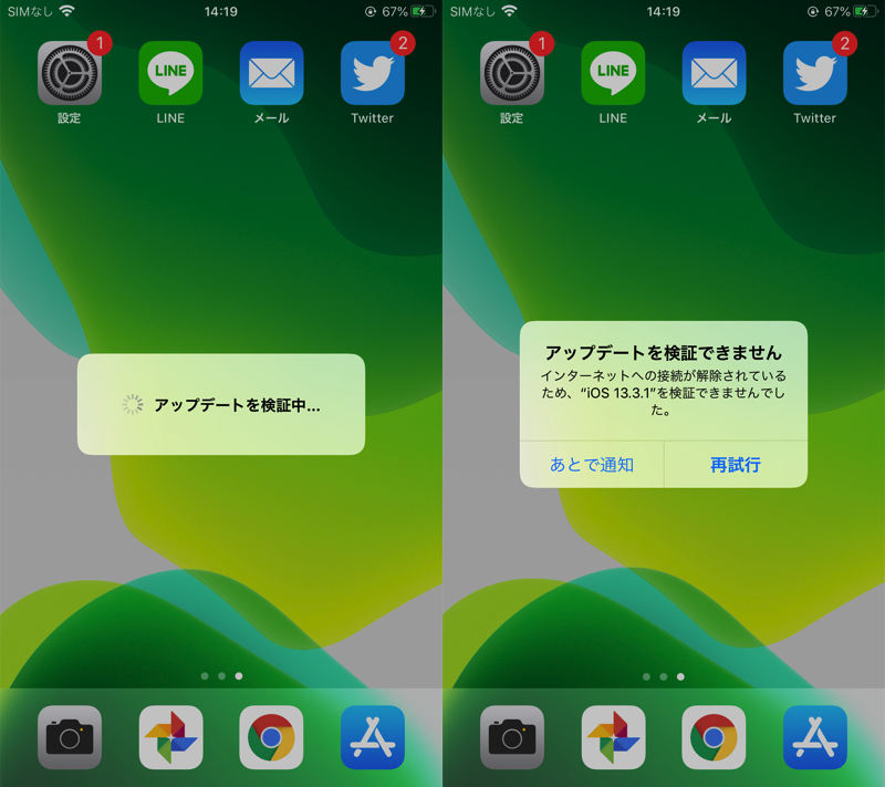 アップデートを検証できません インターネットへの接続が解除されているため、"iOS x.x.x"を検証できませんでした