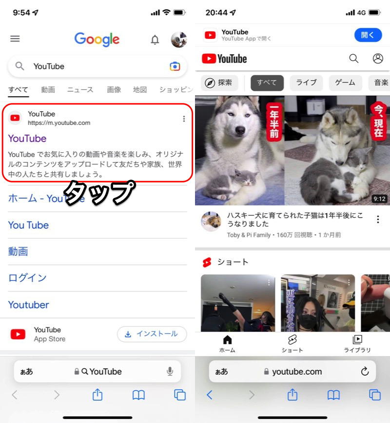 选择“打开”后在 Safari 上显示的 YouTube 网站示例。