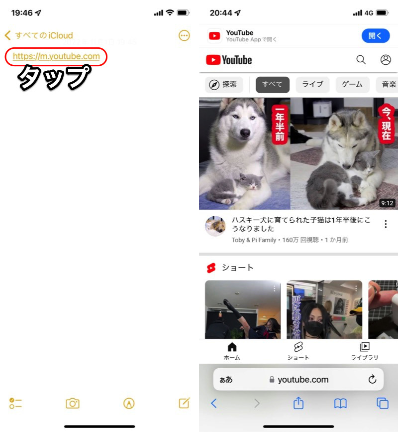 当您点击记事本中的链接时,它们也会自动显示在 YouTube 应用中。