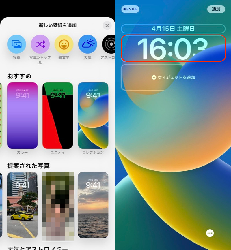 (左)选择新的锁屏壁纸(右)点击红框内的时钟