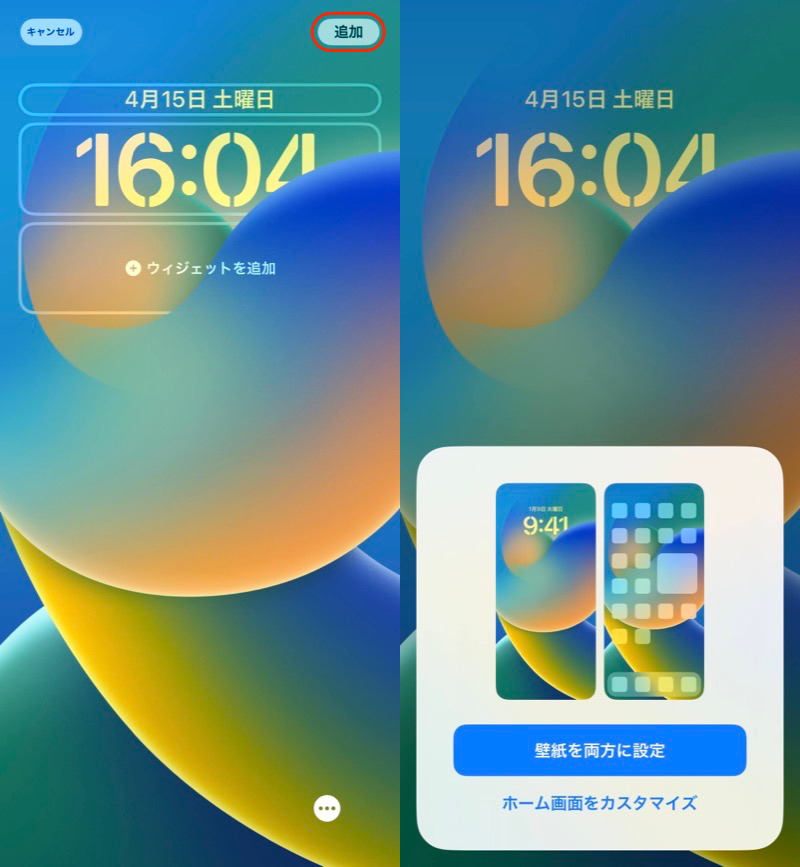 (左)点击添加红框(右)为两者设置壁纸