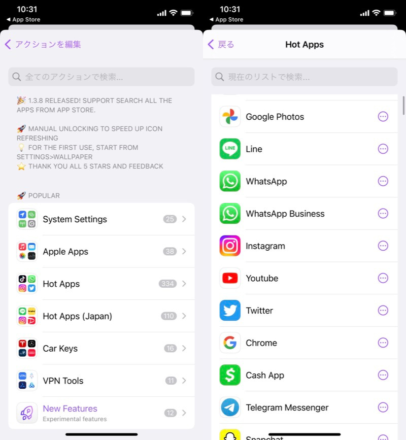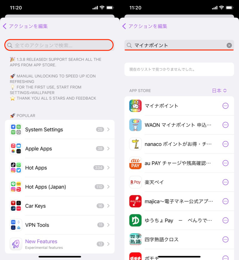 (左)可以从红框处进行搜索(右)应用被关键词命中
