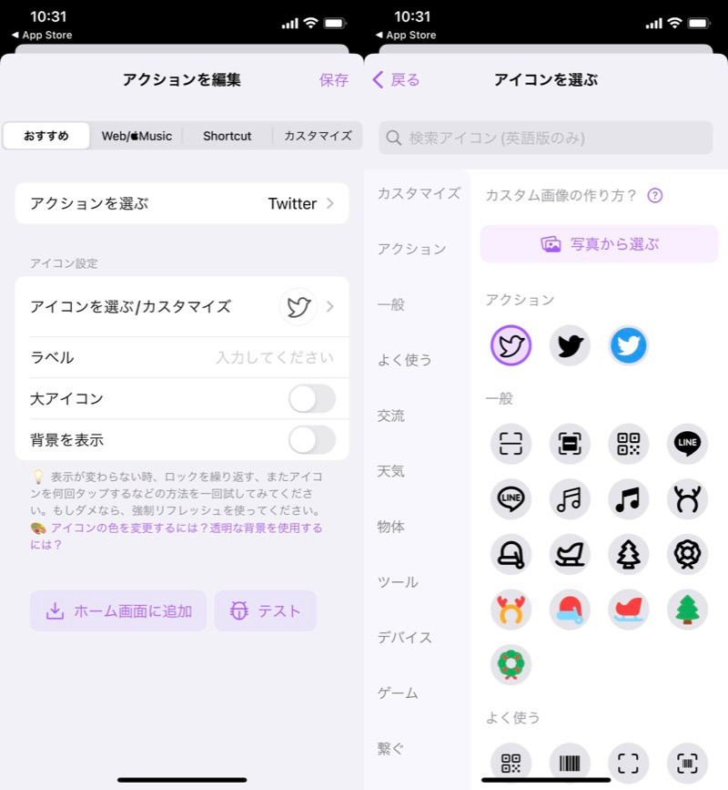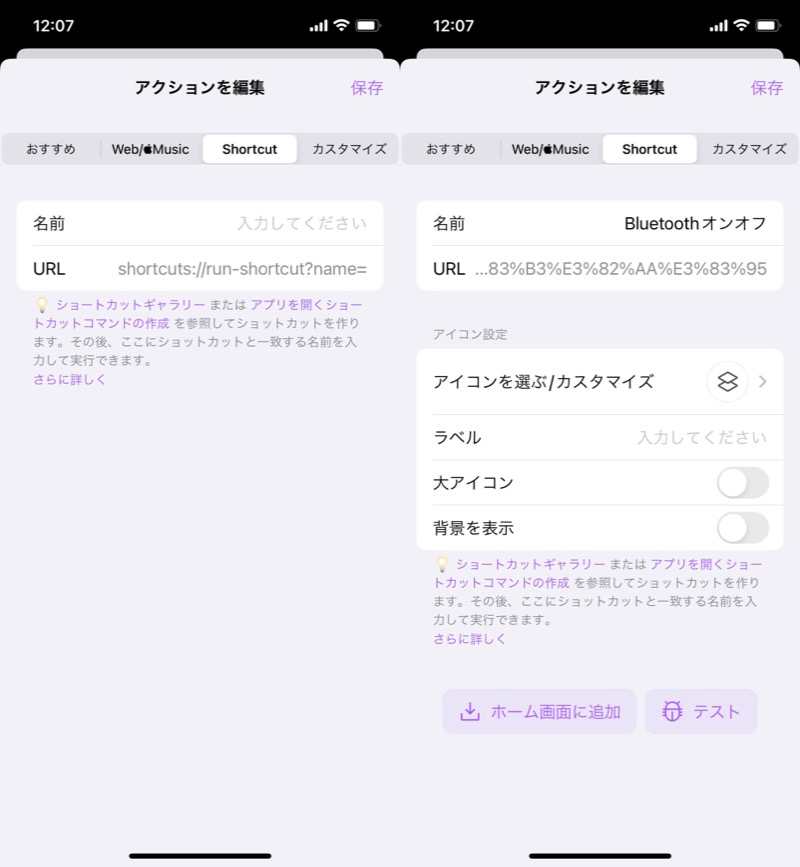 (左)输入与快捷方式匹配的名称(右)决定图标设计等。