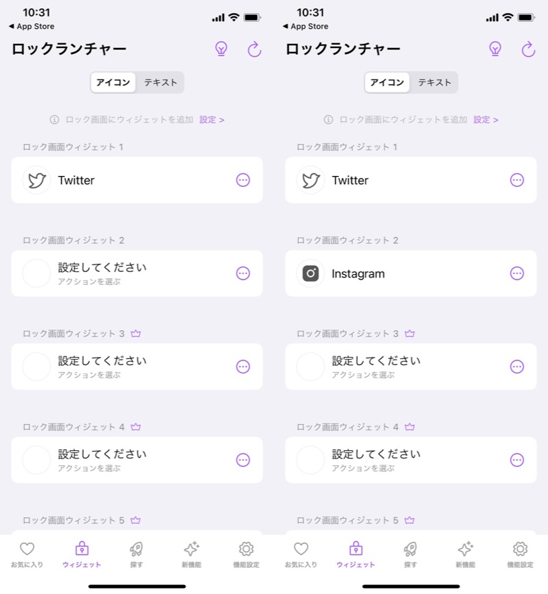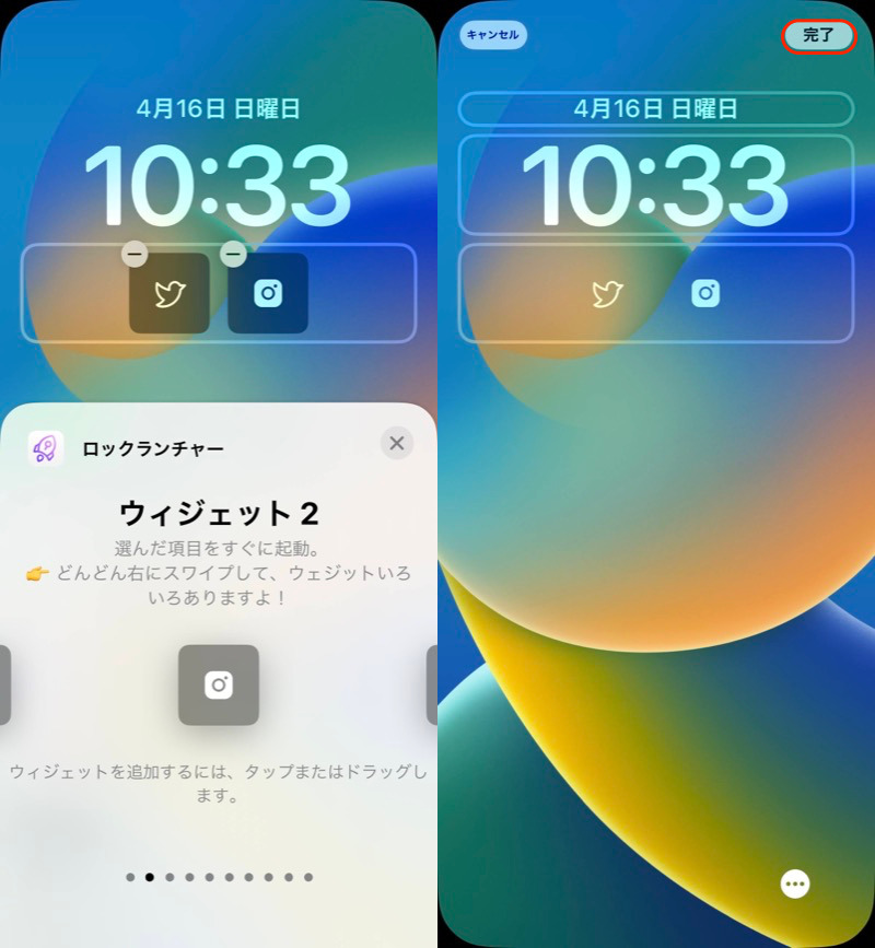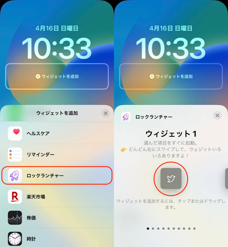 (左)选择锁定启动器(右)按顺序添加小部件