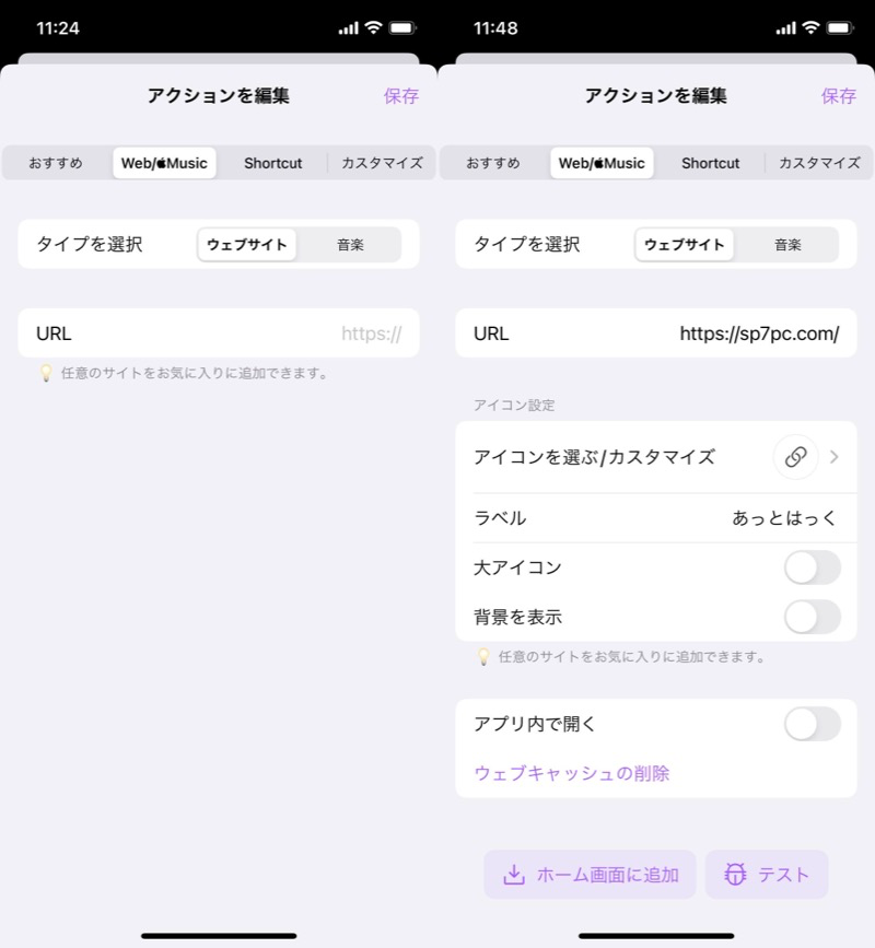 (左)输入 URL (右)决定图标设计等。