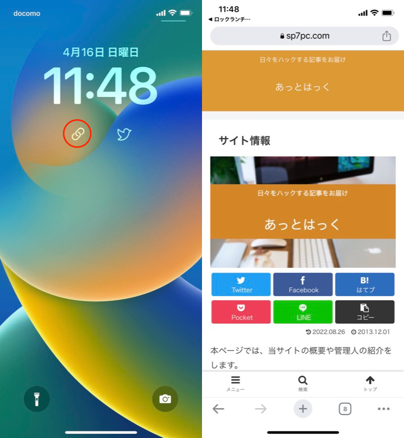 直接从锁定屏幕打开此网站的示例。