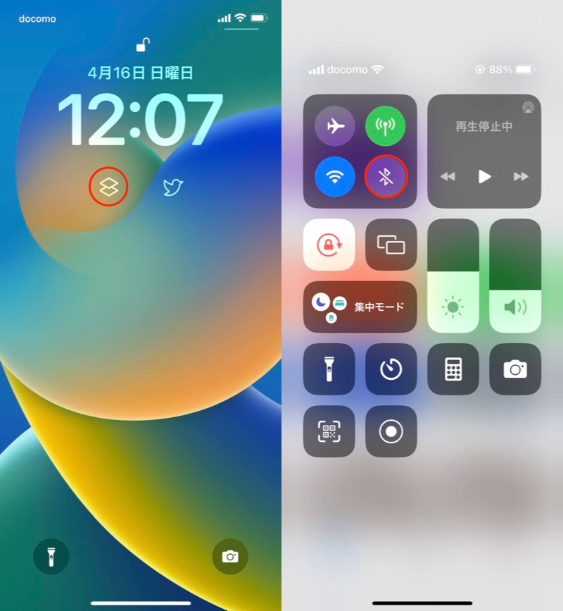 在锁定屏幕上轻轻一按即可完全打开和关闭蓝牙的示例。