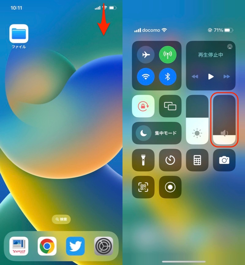 (左)向下滑动红色箭头 (右)移动红框内的滑块
