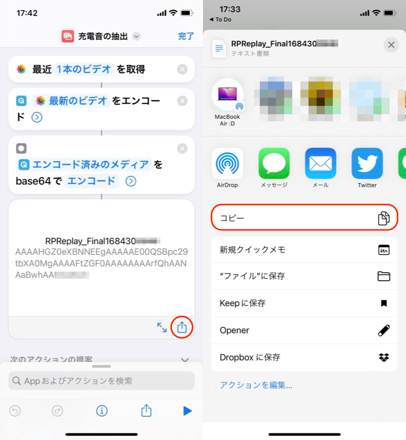使用“快捷方式”应用程序从录制的文件中提取音频。