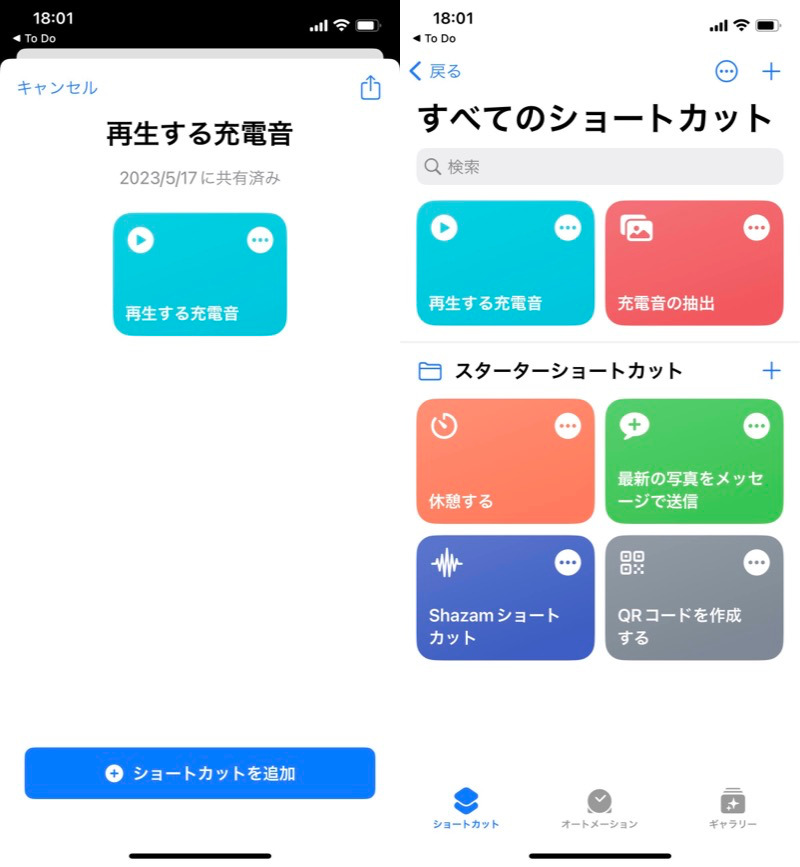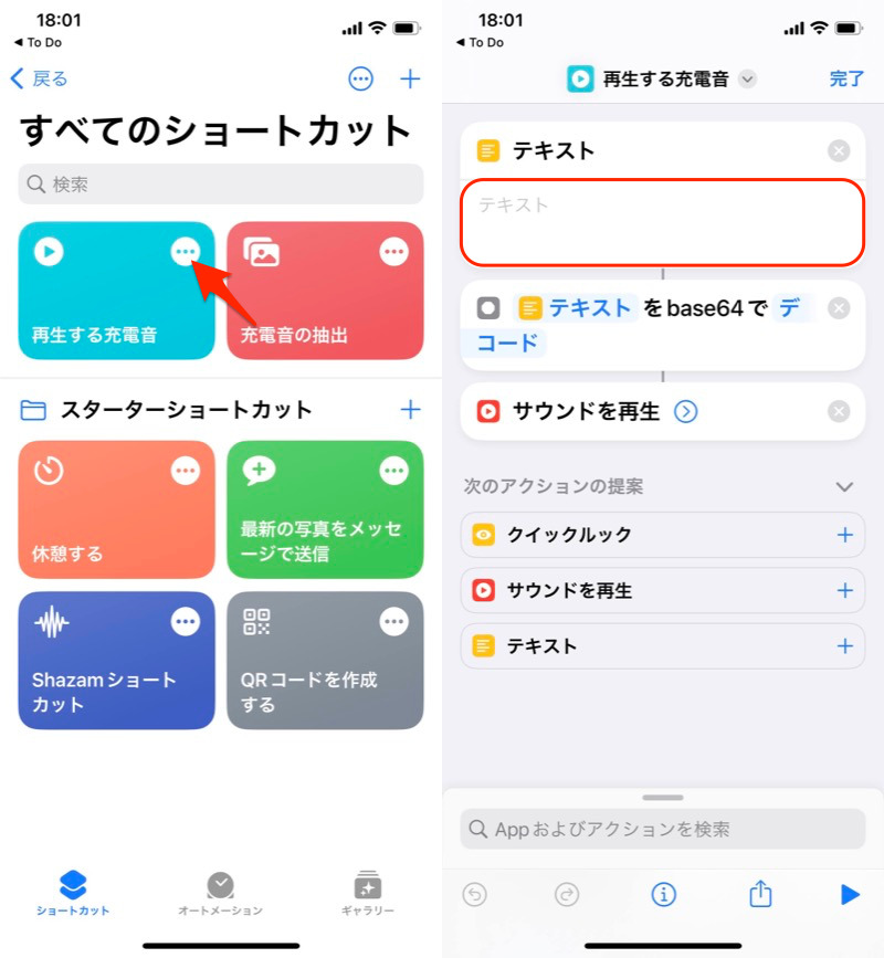使用“快捷方式”应用程序创建要播放的充电声音。
