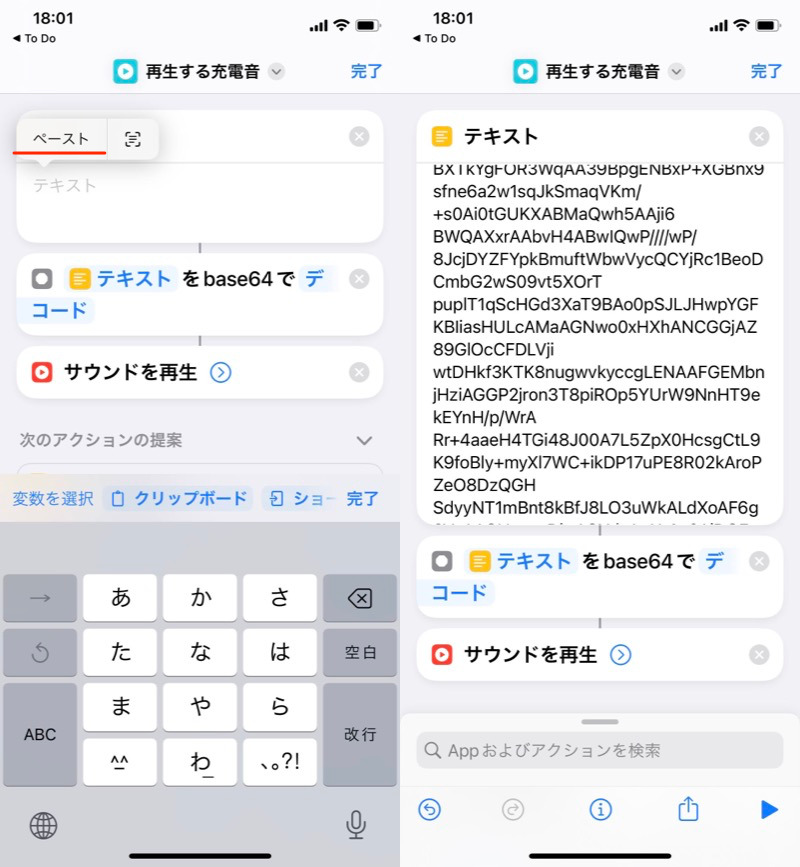 (左)长按→粘贴 (右)复制的字符被粘贴