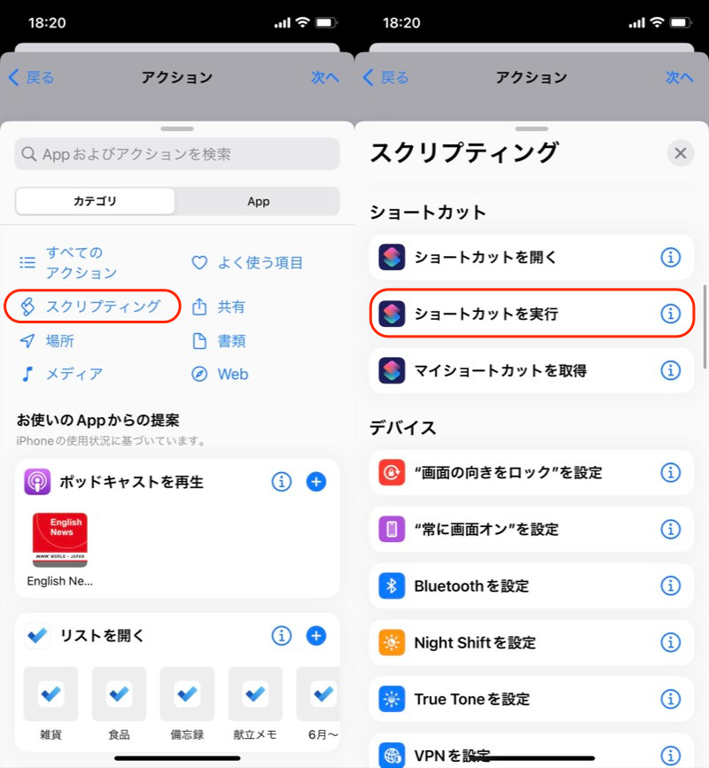 已连接选中该框。到下一个转到“脚本”并选择“运行快捷方式”作为操作。