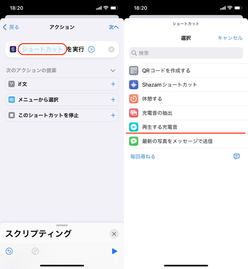捷径点击 并选择步骤 3 中创建的快捷方式“播放充电声音”。