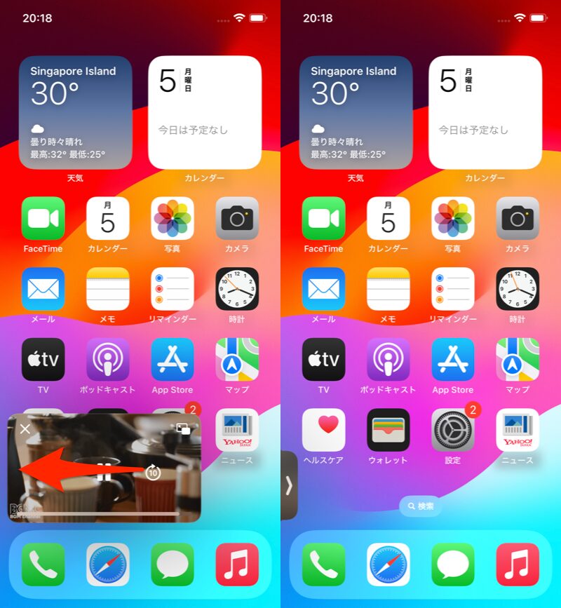 当您滑动到屏幕边缘(左)时,小窗口将关闭,并且仅播放音乐(右)。