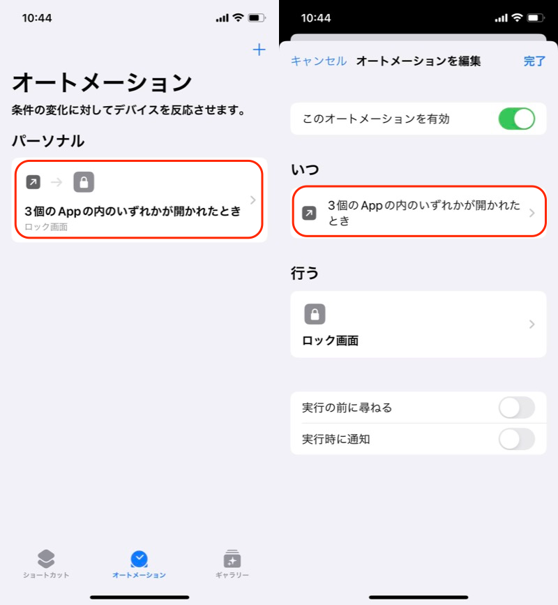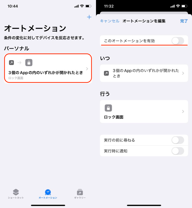 (左)①自动化 → ②创建个人自动化(右)应用程序