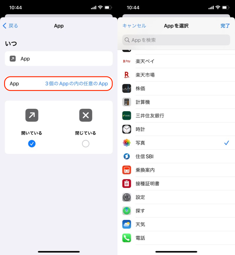 (左)选择一个应用程序 (右)您可以选择多个应用程序