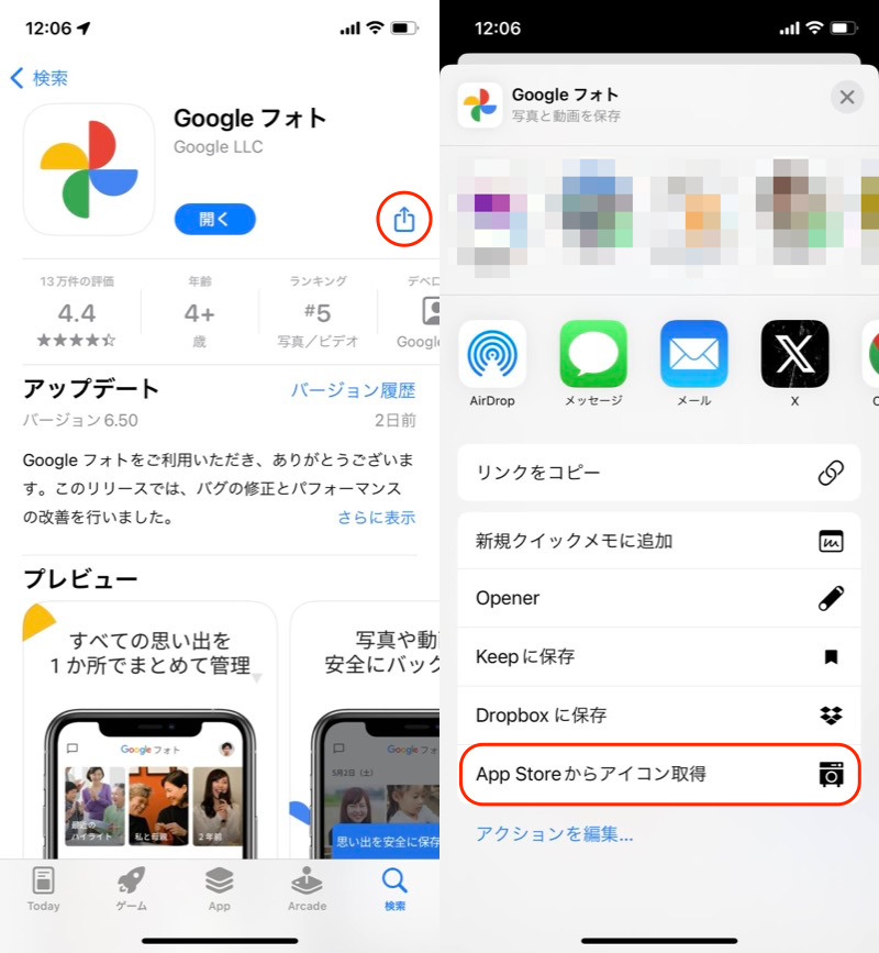 从共享菜单中执行快捷方式“从 App Store 获取图标”。