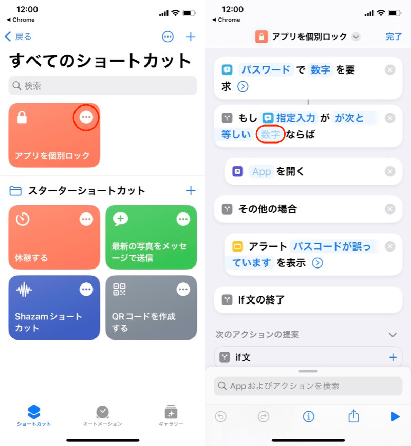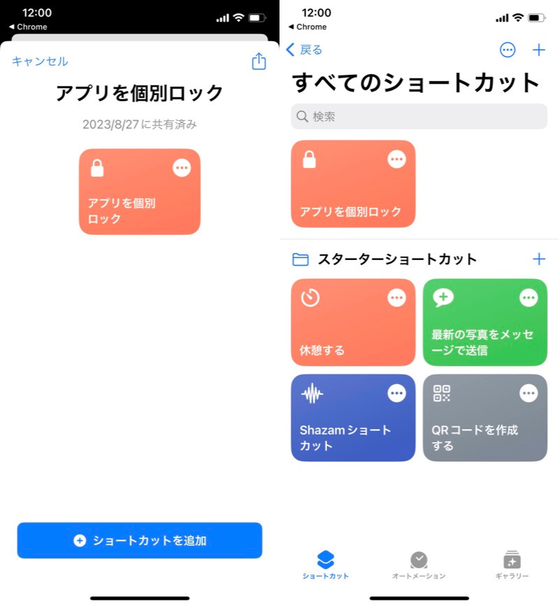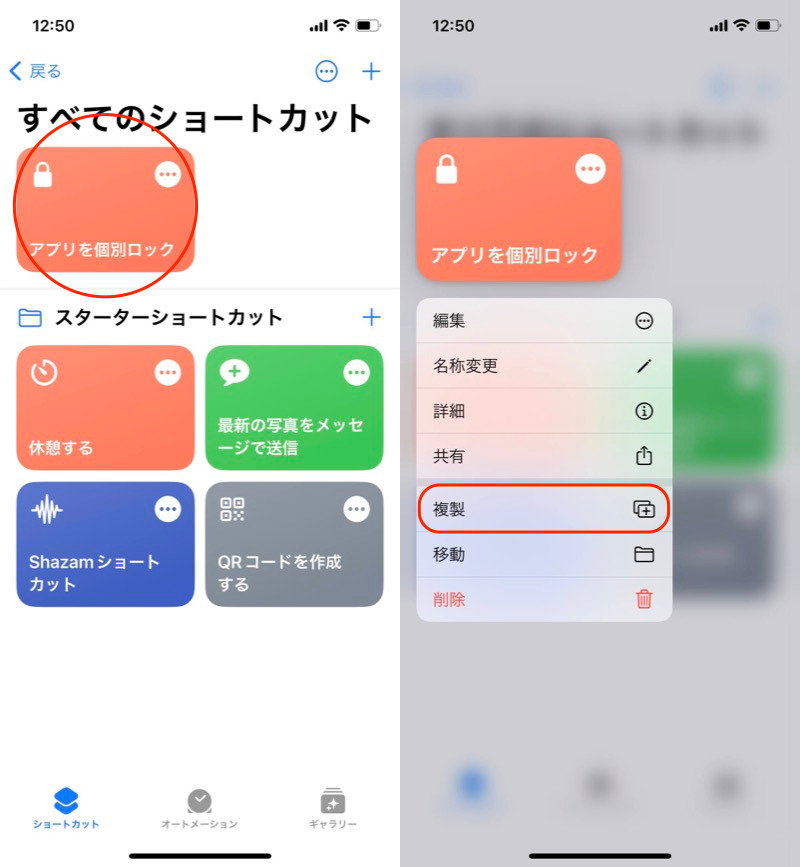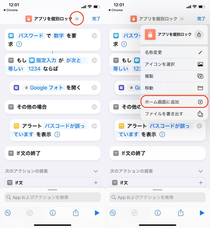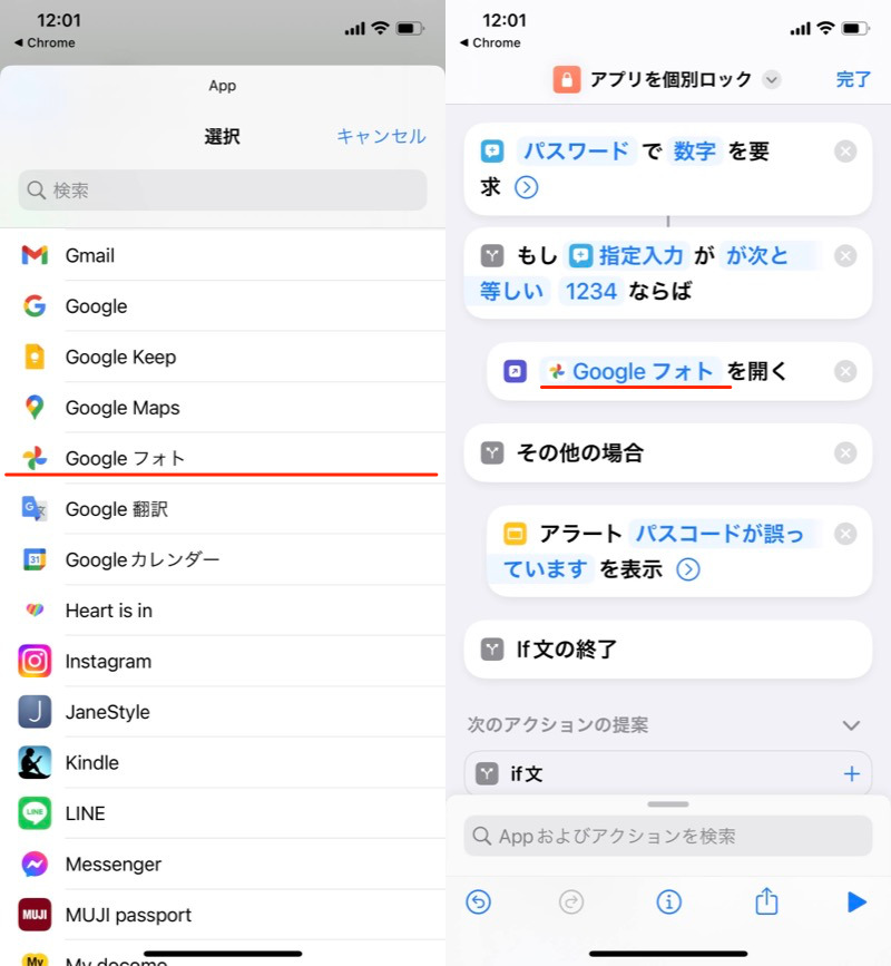 例如,如果您想为 Google Photos 和 Instagram 设置密码,请为每个应用程序创建两个快捷方式。