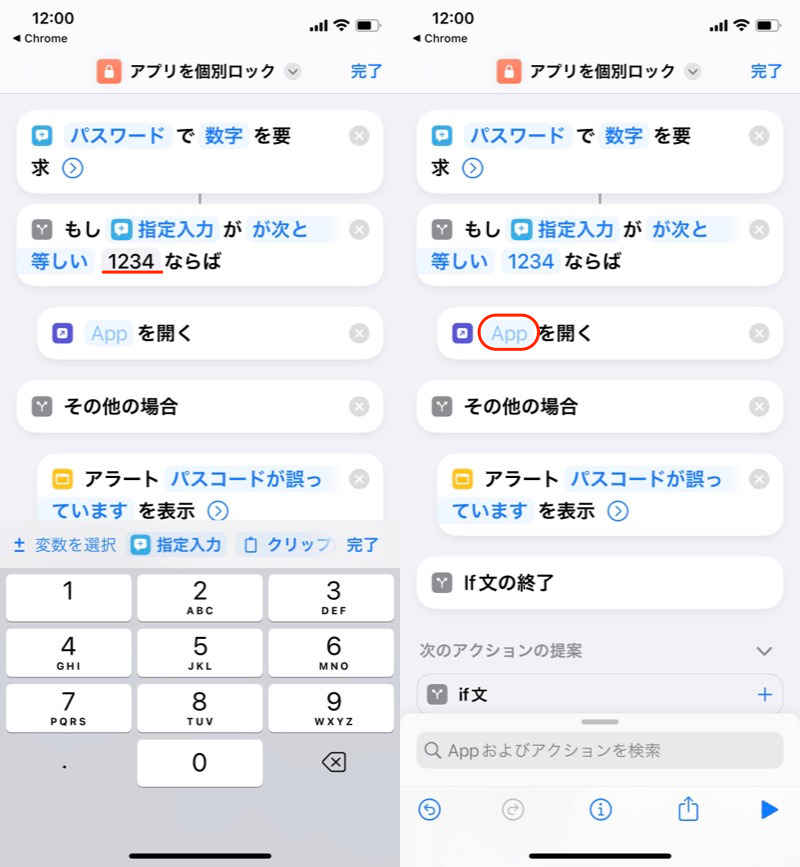 (左)密码设置为 1234 的示例(右)打开应用程序