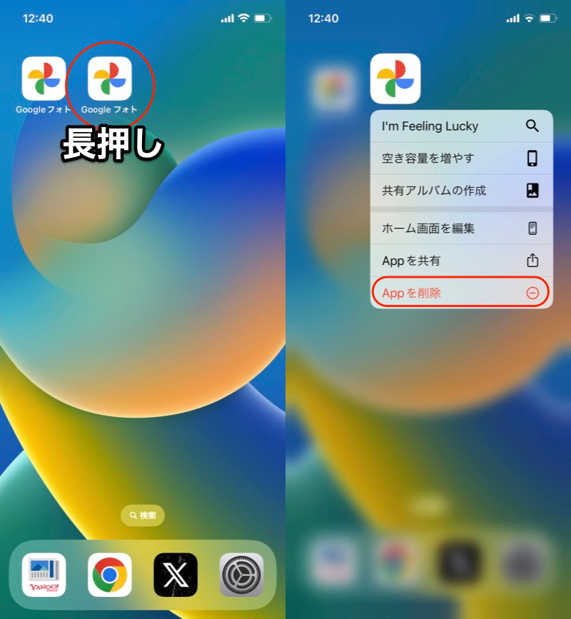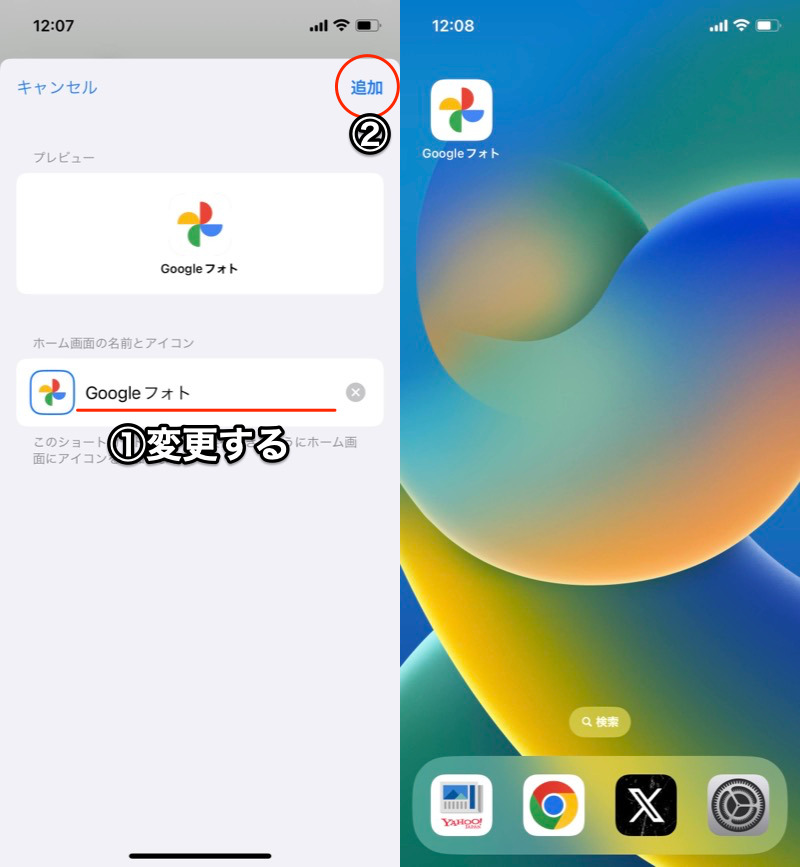 (左)将图标名称更改为Google Photos(右)图标添加到主屏幕