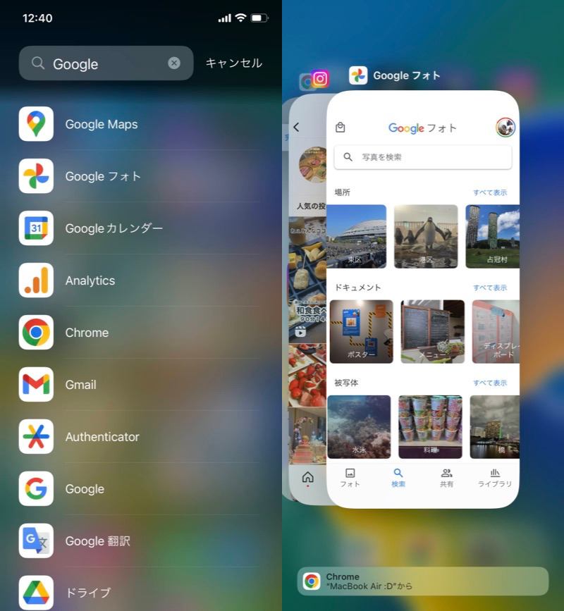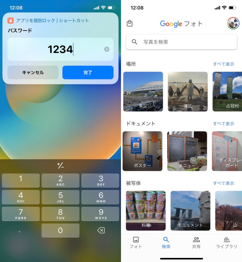 从应用程序切换器(左)或应用程序库(右)打开时也需要密码。